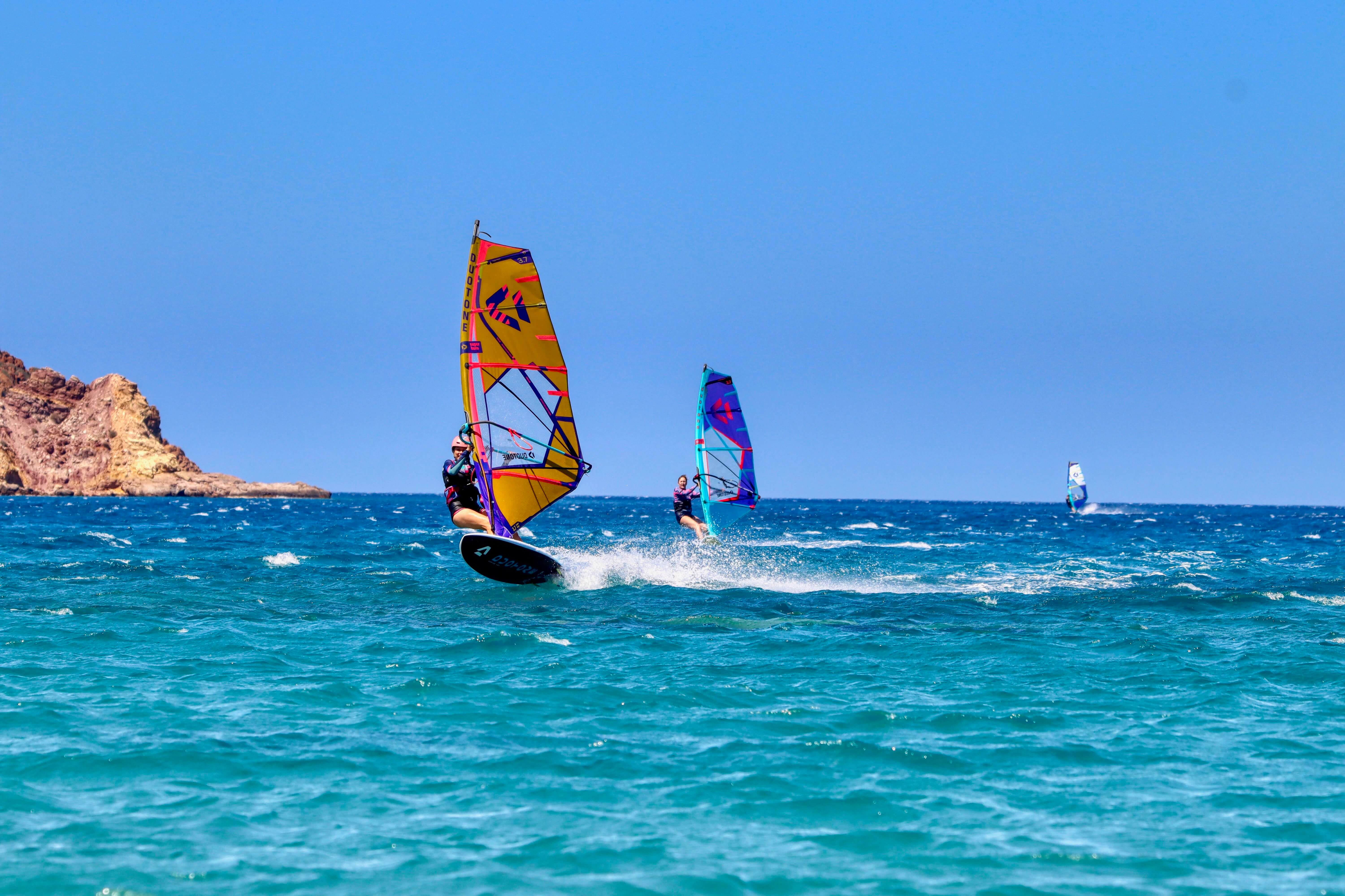 Eau plate, vent constant et ambiance détendue — le windsurf en Crète dans les meilleures conditions.